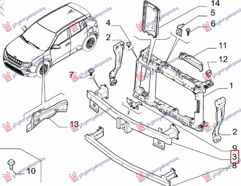 Шина / основа преден браник (Оригинал) – Каросериски дел за JEEP AVENGER, од 22- година