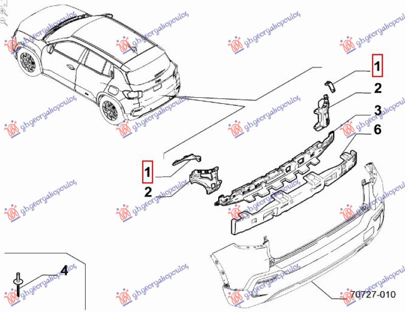 Држач заден браник горен пластичен (оригинал) за JEEP AVENGER 22- - OEM: 52173342